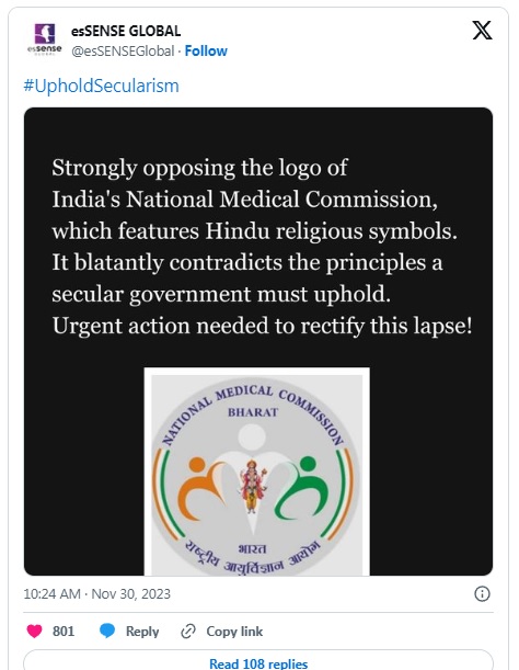 నేషనల్ మెడికల్ కమిషన్ (NMC) ఇటీవల హిందూ దేవుడు ధన్వంతరిని కలిగి ఉన్న లోగోతో తన అధికారిక లోగోను మార్చిందని పేర్కొంటూ ఒక దావా/వాదన వైరల్ అవుతోంది. లోగో మధ్యలో ఉన్నది ధన్వంతరి దేవుడని స్పష్టంగా కనబడుతుంది మరియు ప్రభుత్వ చిహ్నాలపై మతపరమైన చిహ్నాలు ఉపయోగించబడుతున్నాయని వాదన పేర్కొంది.