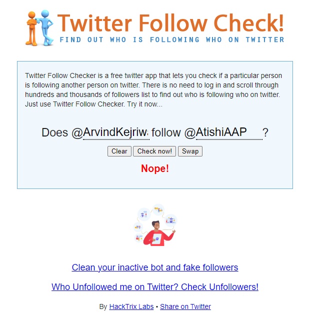 అందువల్ల, “ట్విట్టర్ ఫాలోవర్ చెకర్”ఆధారంగా చేసిన వాదన తప్పు.